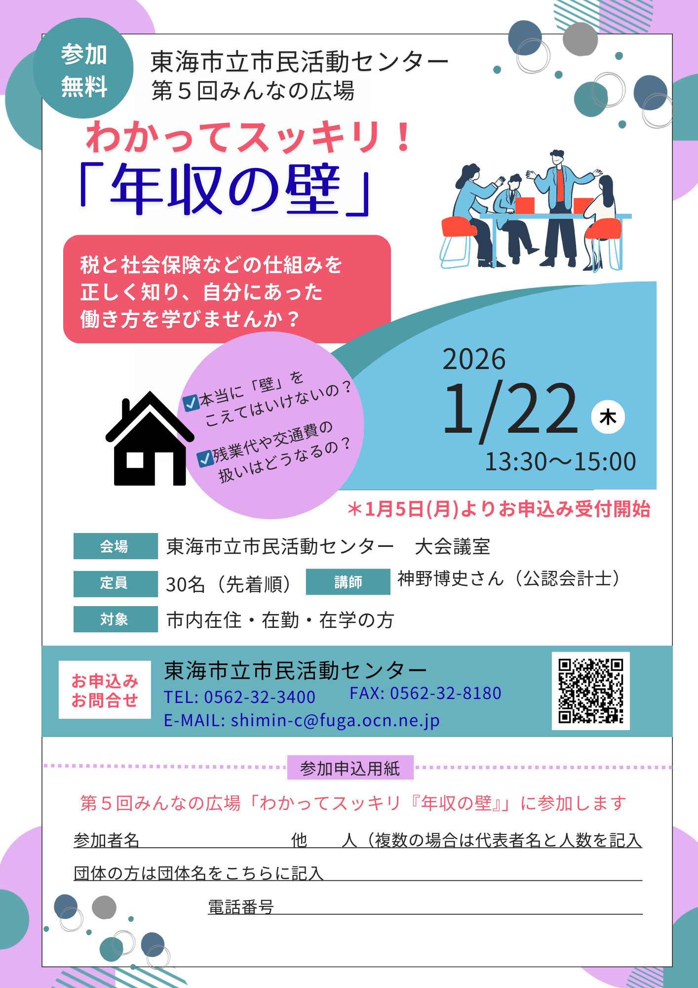| タイトル | 第5回みんなの広場 わかってスッキリ!「年収の壁」 |