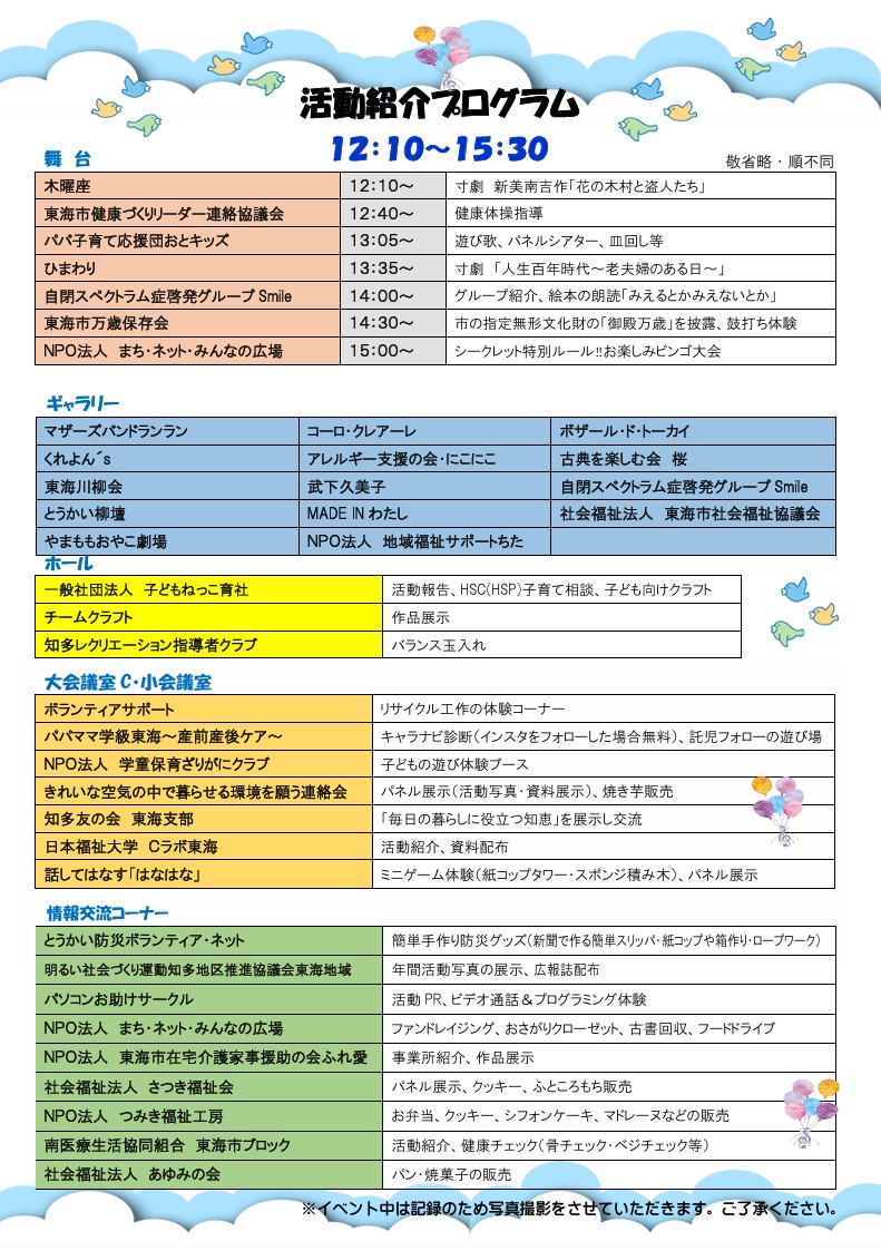 ※リザーブ席・印刷作業室は、 登録団体のみ利用できます 2026市民交流プラザまつり ◆基調講演◆ 「多様な人が活躍するまち育て」 10:00〜12:00 ![]() ◆登録団体による活動紹介◆ 12:10〜15:00 ![]() ![]() ※詳しくは各チラシを クリックして下さい