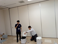 東海市役所防災危機管理課からは災害用簡易トイレの使い方を学びました。設置する際のアドバイスを頂きながら実際に体験することができ、とても貴重な体験をすることができました。